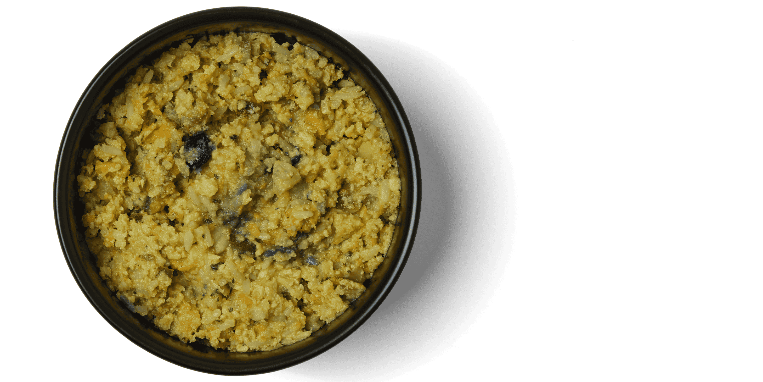 Egg, White Potato, Sweet Potato, Cottage Cheese, Long Grain White Rice, Spinach, Cauliflower, Blueberry, Dicalcium Phosphate, Calcium Carbonate, Fish Oil, Turmeric, Sodium Chloride, Potassium Chloride, Zinc Gluconate, Ascorbic Acid, Calcium Pantothenate (Vitamin B5), Vitamin E supplement, Niacin (Vitamin B3), Thiamine hydrochloride (Vitamin B1) Riboflavin (Vitamin B2), Pyridoxine hydrochloride (Vitamin B6), Beta Carotene, Folic acid, Biotin, Vitamin B12 supplement, Potassium Iodide, Selenium Yeast, Tagetes (Aztec Marigold) Extract, Vitamin D3 Supplement