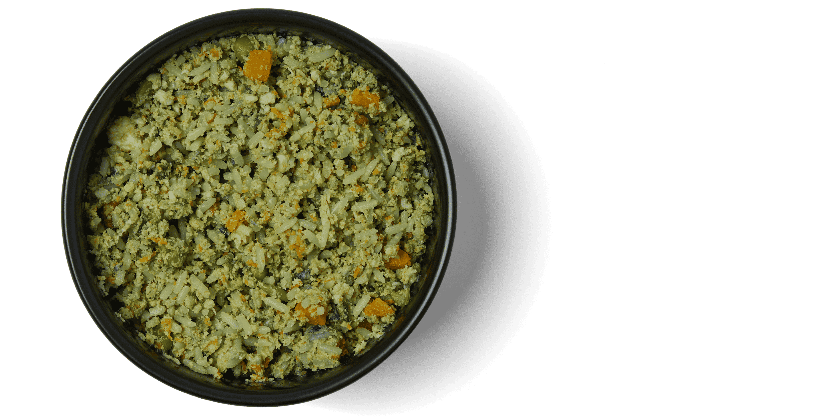 USDA Ground Chicken, Pumpkin, Long Grain White Rice, Butter, Blueberry, Pea, Spinach, Fish Oil, Turmeric, Oregano & Wynwood’s VitaMineral Mix